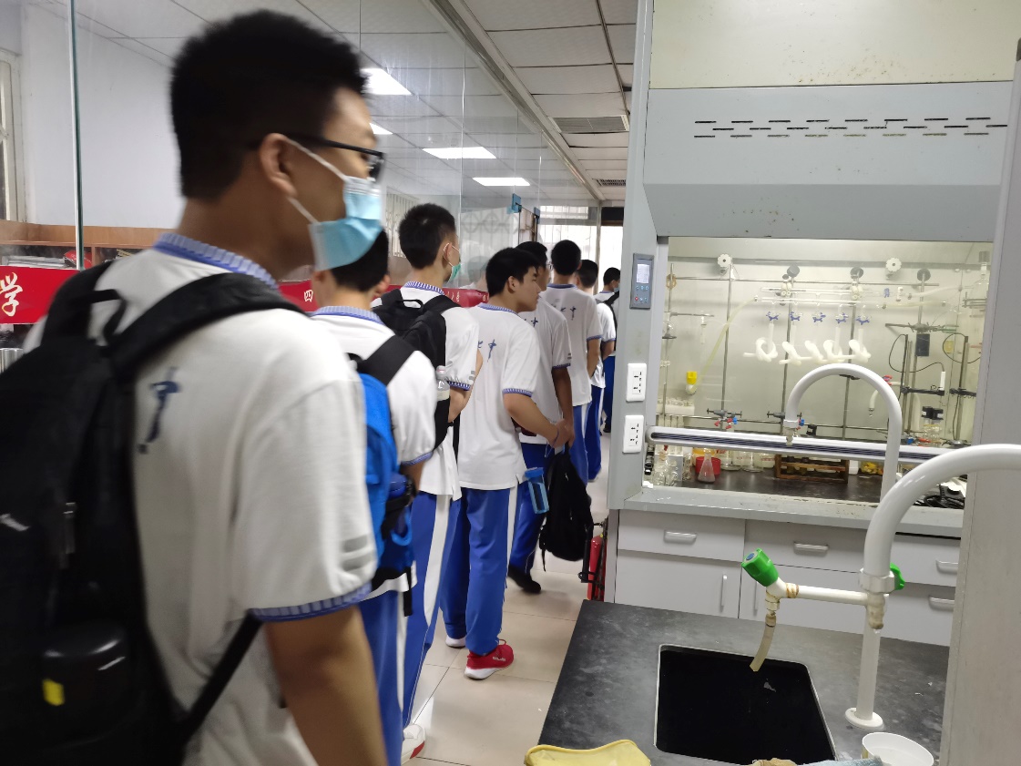 参观结束后,同学们基于目前的化学知识和概念,对实验室各种仪器和化学反应进行提问和讨论,实验室老师一一耐心解答,鼓励大家在高中阶段认真学习化学基础知识,为进入大学学习打下基础,也欢迎大家今后再次来实验室参观。本次参观化学实验室的校园体验日活动增进了七中同学对川大化学学科的了解,有效推动了本科招生宣传工作的开展。