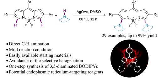 14) Huaxing Zhang, Xingyu Chen, Jingbo Lan,* Yanhong Liu, Fulin Zhou, Di Wu,* Jingsong You.* Silver-mediated direct C–H amination of BODIPYs for screening endoplasmic reticulum-targeting reagents. Chem. Commun., 2018, 54, 3219�3222.