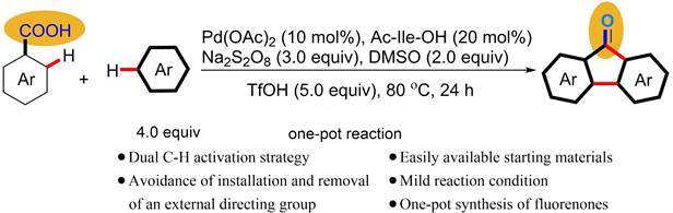 23) Denan Sun, Bijin Li, Jingbo Lan,* Quan Huang and Jingsong You.* Chelation-assisted Pd-catalysed ortho-selective oxidative C–H/C–H cross-coupling of aromatic carboxylic acids with arenes and intramolecular Friedel–Crafts acylation: one-pot formation of fluorenones, Chem. Commun., 2016, 52, 3635�3638.