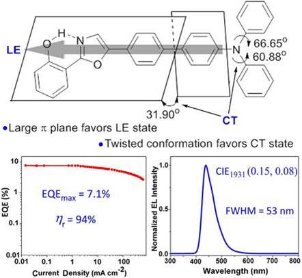 19) Bijin Li, Guoqiang Tang, Linsen Zhou, Di Wu, Jingbo Lan,* Liang Zhou,* Zhiyun Lu, Jingsong You.* Unexpected sole enol-form emission of 2-(2'-hydroxyphenyl)oxazoles for highly efficient deep-blue-emitting organic electroluminescent devices. Adv. Funct. Mater., 2017, 27, 1605245.