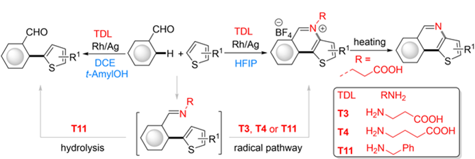 6) Shiping Yang, Rui Cheng, Tingxing Zhao, Anping Luo, Jingbo Lan,* and Jingsong You.* Rhodium-Catalyzed C−H/C−H Cross Coupling of Benzylthioethers or Benzylamines with Thiophenes Enabled by Flexible Directing Groups. Org. Lett. 2019, 21, 5086�5090.
