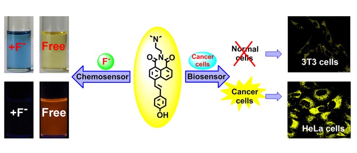 16ã€Xujun Zheng, Wencheng Zhu, Dong Liu, Hua Ai,* Yan Huang,* Zhiyun Lu,* Highly Selective Colorimetric/Fluorometric Dual-Channel Fluoride Ion Probe, and Its Capability of Differentiating Cancer Cells, ACS Appl. Mater. Interfaces, 6, 7996-8000, 2014.