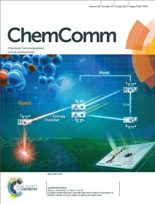 15ã€Jie Zhou, Ping Chen, Xu Wang, Yan Wang, Yi Wang, Feng Li,* Minghui Yang, Yan Huang, Junsheng Yu,* Zhiyun Lu,* Charge-Transfer-Featured Materials—Promising Hosts for Fabrication of Efficient OLED through Triplet Harvesting via Triplet Fusion, Chem. Commun., 50, 7586-7589, 2014 (Cover story).