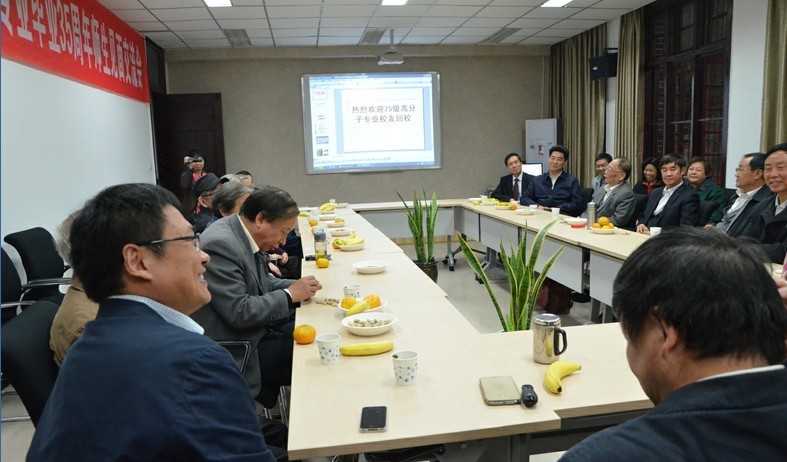 75级高分子专业共有毕业生20名,多年来在科学研究、产业化建设和社会管理等多项工作中取得突出成绩,捷报频传。此次聚会在国内的17名同学都从全国四面八方赶来,看着曾经的老照片,聊着过去美好的日子,洋溢着幸福的微笑。此次聚会是75级高分子专业的同学第一次全班聚会,聚会在愉快的气氛中圆满结束,分别时大家依依不舍,同时对自己的母校和学院送上了最美好和诚挚的祝福。