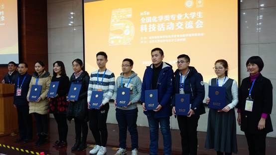 学生虞志乾同学以《方法学高效构筑杂环并异喹啉骨架》为题进行了口头汇报,并荣获“优秀报告”奖。此外,四名参会学生都制作了墙报并受到与会师生的关注和好评,其中傅永鸿同学的《基于环芳酰胺和咪唑主客体作用调控的低临界相转变体系》墙报荣获“优秀墙报”奖。