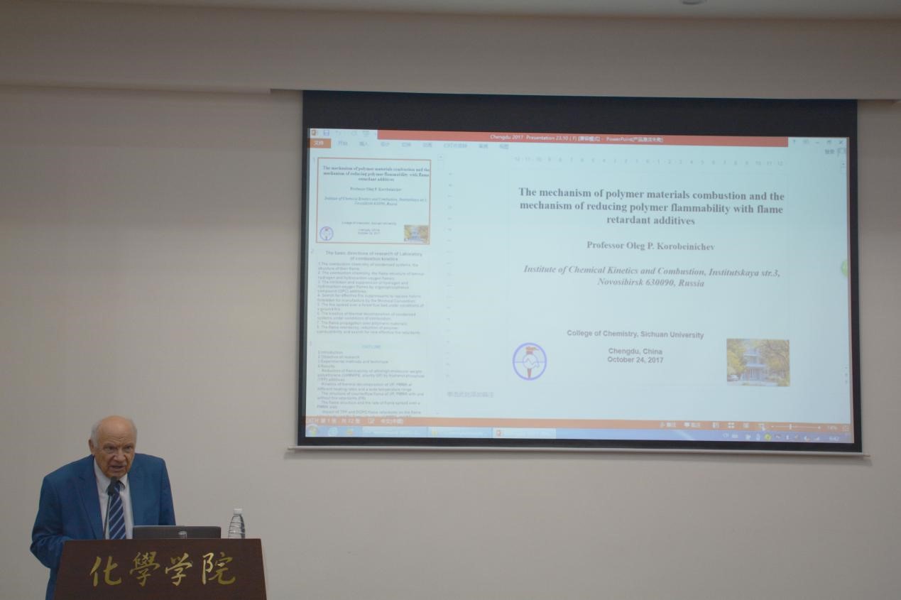 ,并在化学馆321报告厅做了精彩的学术报告讲座。这几位专家长期致力于聚合物阻燃材料阻燃领域的研究,在国际阻燃界久负盛名。本院的师生以及慕名而来的其他学院的老师和同学参加了此次活动。此次交流活动由环保型高分子实验室主任王玉忠院士主持,在介绍了几位教授的学术经历、学术兴趣和学术成果后,王玉忠院士代表主办单位对他们的到来表示了欢迎和感谢。