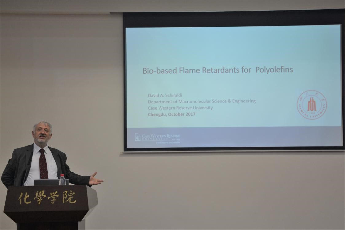 主办,环保型高分子材料国家地方联合工程实验室承办的“阻燃化学国际学术活动周”成功举办。活动期间,国际阻燃领域知名专家凯斯西储大学高分子工程系主任David A. Schiraldi教授、意大利都灵理工大学首席教授Giovanni Camino教授、俄罗斯科学院西伯利亚分院化学动力学与燃烧研究所OlegP.Korobeinichev教授、法国国立里尔大学Serge Bourbigot教授和Maude Jimenez教授、德国弗劳恩霍夫工作可靠性研究院(LBF)塑料事业部Manfred Doring教授等六位教授莅临a漫