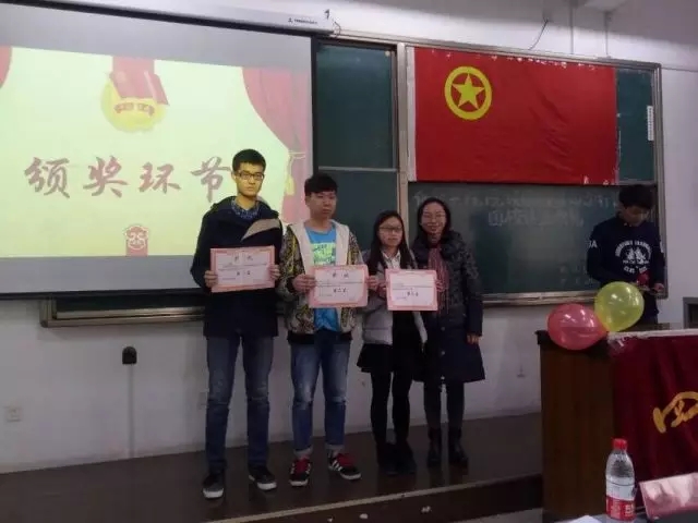 首先是颁奖环节:在上次的第三次团校——素拓活动中,2016级201支部获得一等奖,103支部获得二等奖,202支部获得三等奖,由a漫