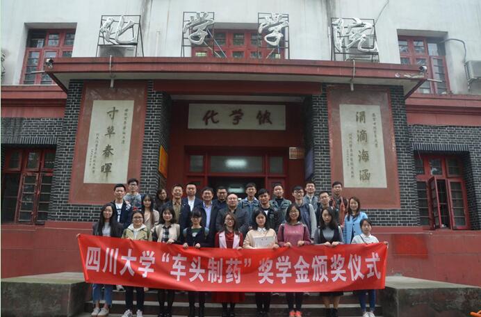 首先,谢均老师向大家介绍到场嘉宾。接下来,王智猛书记致欢迎辞,并借荷花池边盛开的垂丝海棠表示对远方来客的欢迎,表达对浙江车头制药公司设立奖学金的感谢。随后,徐建江总监发言谈到设立奖学金是为了传递关爱理念,让学子们感受到社会的关爱,希望学子们以后在科研、工作中做出更优秀成绩,当自己有能力的时候也能够“让善意传递下去”。华西药学院党委副书记胡晓娟老师宣布获奖学生名单,到会嘉宾为获奖同学们颁奖。