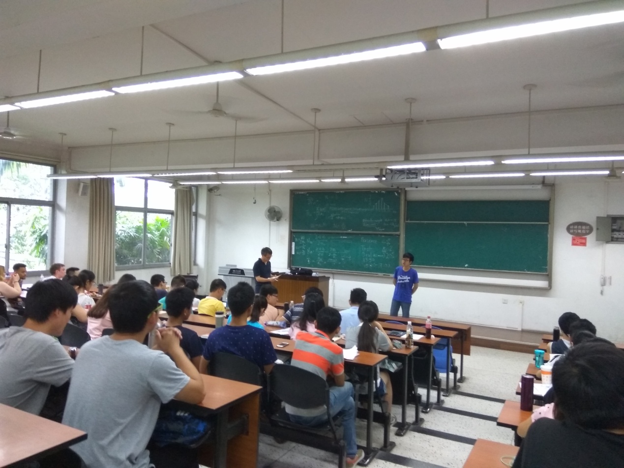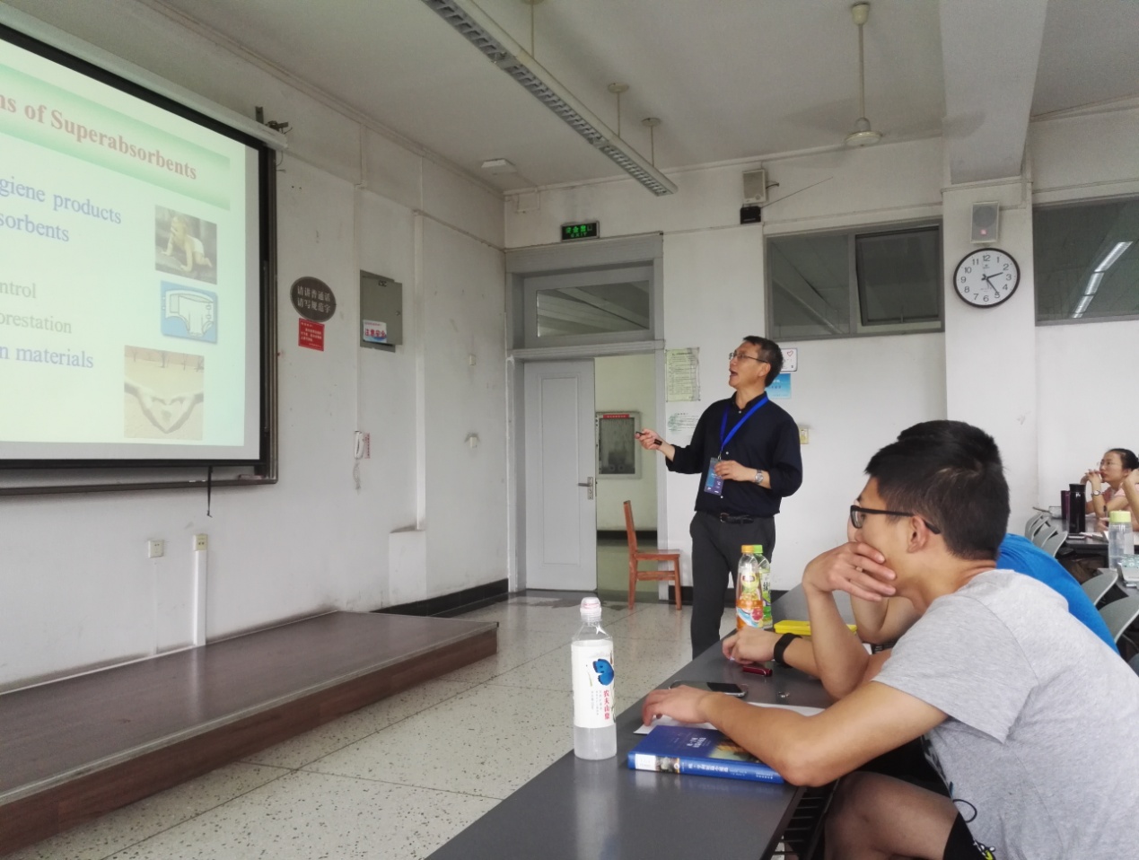 在短短几天时间内,朱晓夏教授先是给同学们介绍自己小组的研究成果,其中利用胆酸这种无毒的生物分子来改性树脂用于合成假牙材料以及利用隐形眼镜监测人体血糖水平等成果引起了同学们的浓厚兴趣。随后,朱教授用浅显易懂的英语讲解高分子化学的一些基础知识,如高聚物结构,高聚物分子量计算,缩合反应和自由基反应机理等等,向还没有系统接触高分子科学的同学们开启了新世界的大门,引起了同学们极大的兴趣。在最后一堂课上,朱教授向同学们提出了用英文作自我陈述的要求,让大家明确英语对于国际交流的重要性,希望大家重视英语学习,培养自己敢于表达的能力,这样的教学方式受到了同学们的广泛称赞。课程结束后,朱教授表示欢迎优秀的同学今后加到蒙特利尔大学加入他的课题组继续从事研究,也希望大家未来不断进取,完成自我超越。