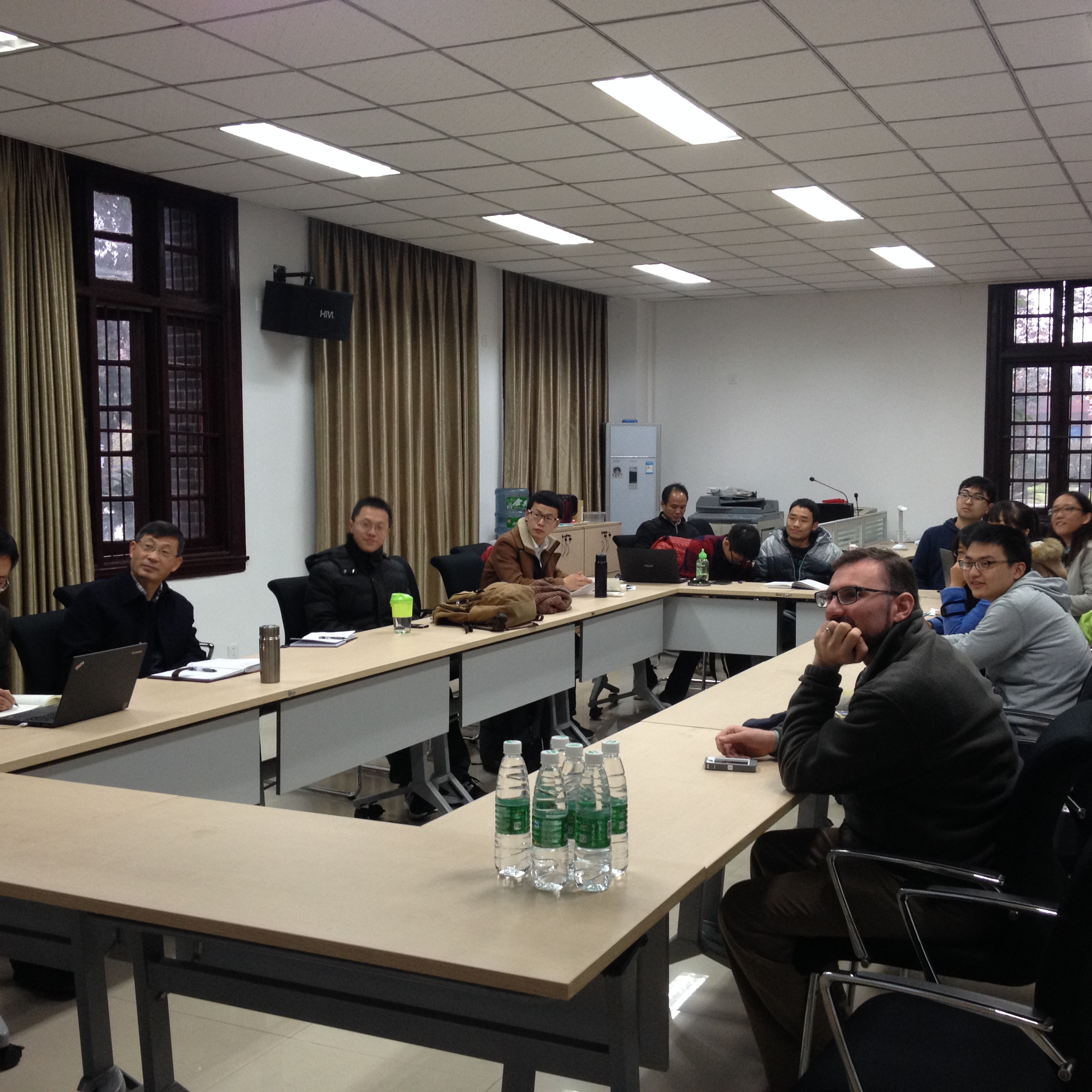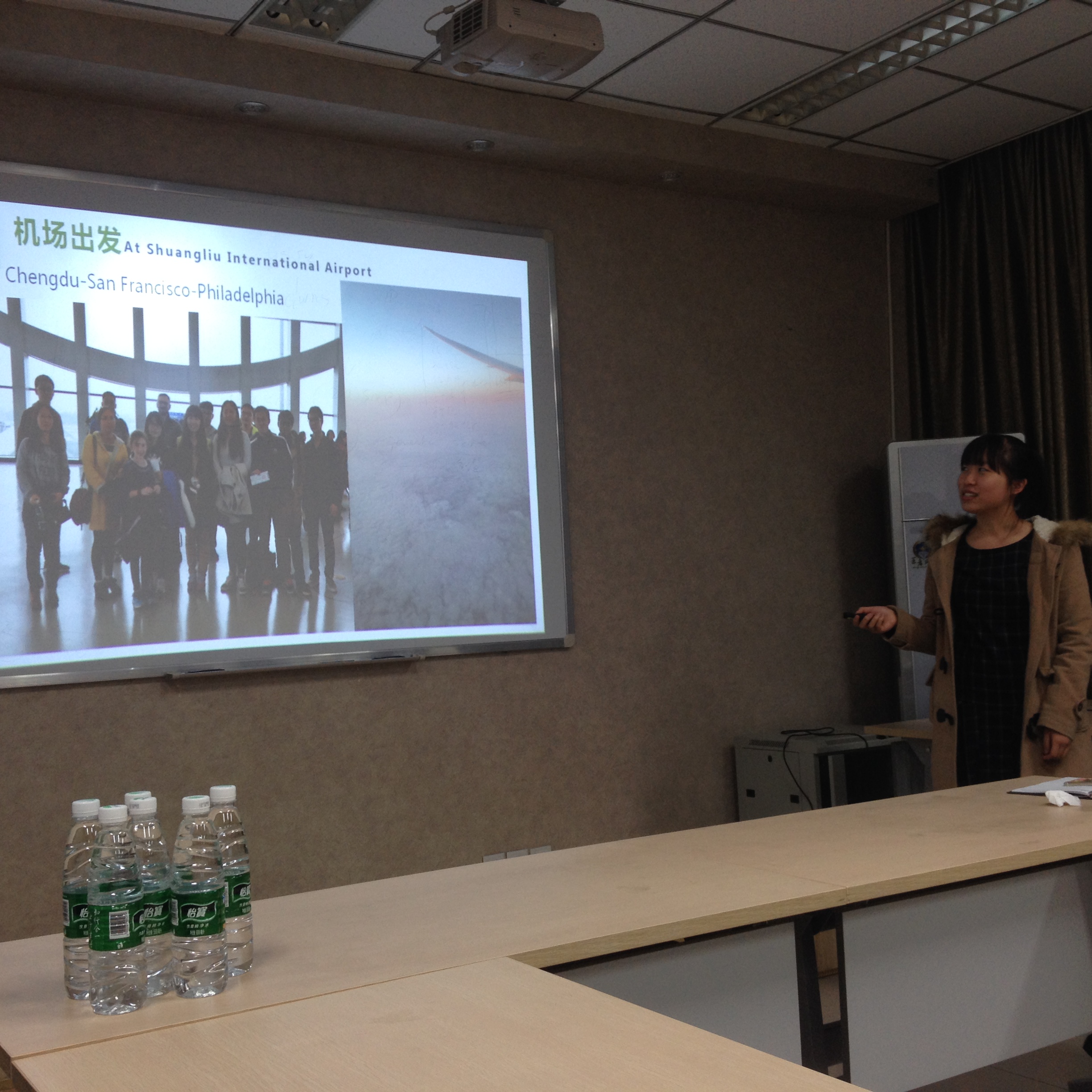 2012级、2013级十名拔尖学生在化学馆122对此前11月9日-20日对美国宾夕法尼亚大学(University of Pennsylvania)、天普大学(Temple University)和哥伦比亚大学(Columbia University)的访学交流进行了总结汇报。Jason Chruma教授主持了汇报会,余孝其院长、王智猛书记、李梦龙副院长、谢均副书记、教学科研科科长姜林老师,外事秘书马晓爽老师参与了会议。