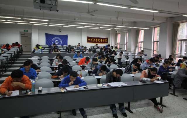 “银杏杯”化学知识竞赛笔试初赛在江安校区第一教学楼B座顺利展开。本次竞赛初赛共设9个考场,共有来自27个学院600余名2015级同学参加。每个考场由一位监考老师以及两位志愿者负责维护考场秩序,a漫