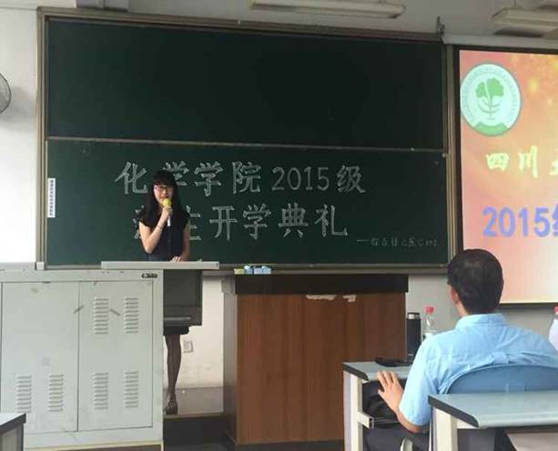 接着,2014级学生代表曾泽安祝贺新同学的到来,然后就过去一年的经历、感受,向学弟学妹们分享了学习生活的经验,也提出了一些学习生活的建议。其后,新生代表李簦芸发言,分享了进入大学的激动与期待,也代表2015级新生表明了会在接下来大学四年的学习生活中,明确目标,努力学习,向所有人展现川大学子的风采。掌声阵阵,同学们的激情与斗志开始燃烧,势必为a漫