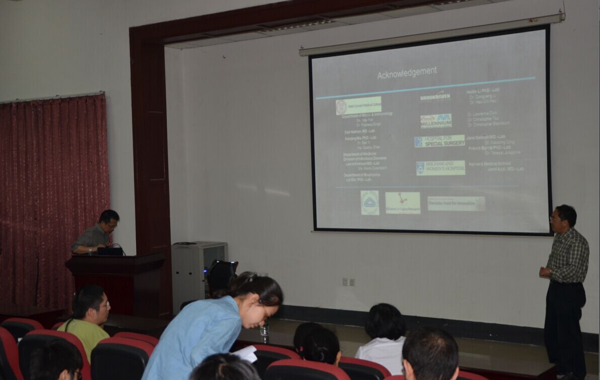 部分老师及相关专业的研究生聆听了此次报告。报告中,林刚博士在其研究的微生物学及免疫学领域的研究进展做了详细的介绍。报告内容详细新颖,林刚博士讲解生动,激发了在场老师和同学的浓厚兴趣。报告结束后,林刚博士教授与学院部分师生进行了亲切互动。