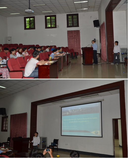 并做学术交流。报告开始之前,Dr. Yang与余孝其院长就本科生3+1联合培养及科研合作事宜进行了讨论,双方初步达成合作意向并将继续跟进合作。之后Dr. Yang在化学馆321学术报告厅为师生做了题为“Novel amine absorbents for post combustion CO? capture”的报告,由余孝其院长主持。在报告中,Dr. Yang首先对CSIRO(澳大利亚联邦科学与工业研究组织)及其下属分支部门进行简单介绍,接着展示了CSIRO部分科研、发明成果及前沿实验设备。之后,对利用胺类吸附剂对燃烧后气体进行碳捕集的最新研究进行了重点介绍。Dr. Yang报告内容新颖,语言幽默风趣,引起了在座师生的强烈兴趣。报告结束后,Dr. Yang与学院部分师生进行了交流。
