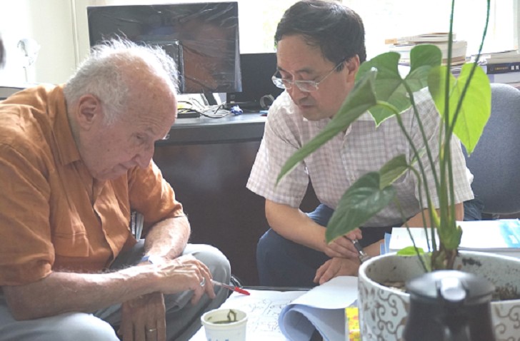 冯小明院士进行了学术讨论,讨论内容主要是霍夫曼(Roald Hoffmann)教授在到成都之前,通过Email和冯小明教授进行沟通和约定的学术问题。此外,霍夫曼(Roald Hoffmann)教授还和a漫