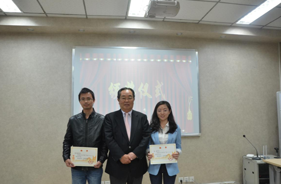 学生的资助和肯定,也希望同学们要更加认真地学习,以后为社会做出更多的贡献。然后,株式会社MORESCO社长赤田民生先生介绍了公司的发展情况。随后,株式会社MORESCO部长、无锡德松科技有限公司总经理刘英进先生宣布获奖名单,并由到场嘉宾为获奖学生颁奖。