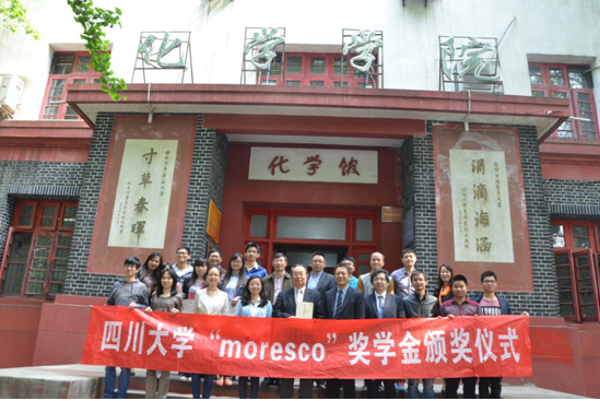 望江校区化学馆126会议室隆重举行。参加此次颁奖的嘉宾有株式会社MORESCO社长赤田民生先生,株式会社MORESCO执行董事、莫莱斯柯花野压铸涂料(上海)有限公司董事长、无锡松村贸易有限公司董事长大村洋一先生,株式会社MORESCO部长、无锡德松科技有限公司总经理刘英进先生,a漫