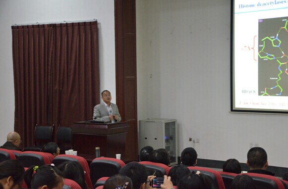 并进行学术交流。在化学馆321报告厅,曹泽星教授做了题为“量子-经典力学组合方法与复杂体系的计算模拟”的学术报告。他介绍了该课题组近几年利用计算模拟对多种复杂的化学物体系取得了较为新颖的研究结果,并进一步讲解了利用量子-经典力学组合方法应用在化学研究上的最新研究进展。余孝其院长主持了报告会,薛英、苏志姗、徐定国、蒲雪梅等研究人员到场听取了报告。曹教授报告内容新颖,讲解深入浅出,激起了在座老师和同学的浓厚兴趣。报告结束后,曹教授与学院部分师生进行了交流和讨论。
