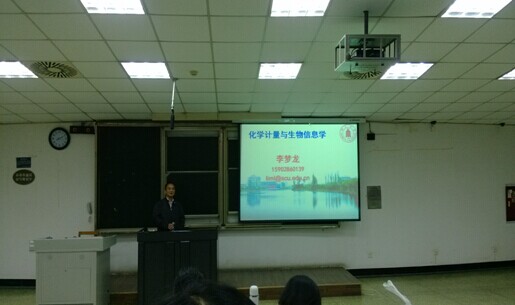 讲座伊始,李梦龙教授首先详细地介绍了与同学们密切相关的保研新政策,同时一一列举了新政策第一次实施过程中遇到的问题,李梦龙院长以此提醒打算读研的同学们要提前做好准备,并积极参加夏令营活动。李梦龙教授在简单介绍完自己学术研究经历以及实验室基本情况之后正式进入本次讲座的主题“化学计量与生物信息学”,以药物设计为例,讲解了化学计量与生物信息学的应用。接着深入浅出地为大家讲解了他的在研科研项目:关于化学与生物信息学的网络分布式共享平台研究等。最后李梦龙教授以2013年化学诺贝尔奖的得主的科研经历为例向大家展示了将实验带入信息时代的重大突破。