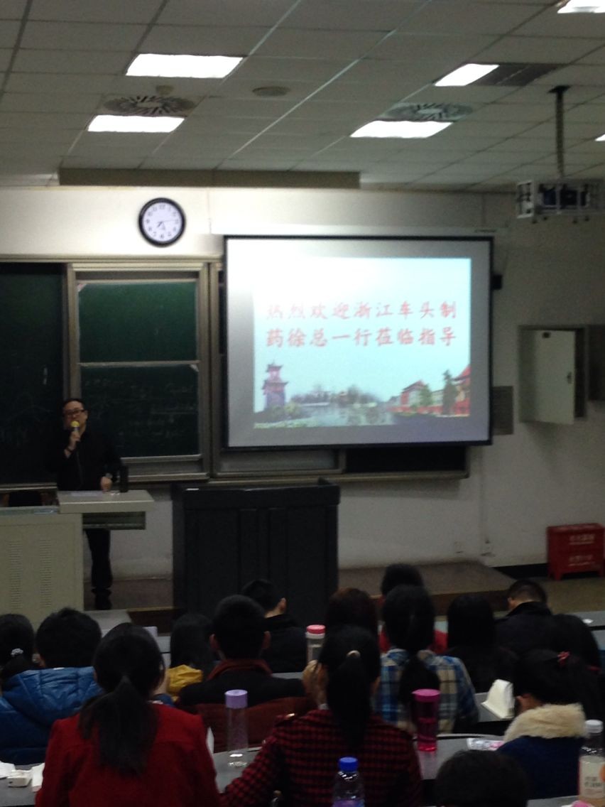 整场讲座在徐总诙谐而又亲切的自我介绍中拉开序幕,然后他祝贺在座的每一位大三学子。因为大部分同学还有一年的大学时光可以享受,同时也提醒同学们,只有一年的时间可以享受,他的开场白简单却又意义深刻,不禁给人深思。徐总对车头制药公司作了很简短的介绍。徐总把讲座的大部分时间留给了在座的同学,由回答同学提问的方式帮助解决大家心中对于考研、就业等相关方面的疑惑。