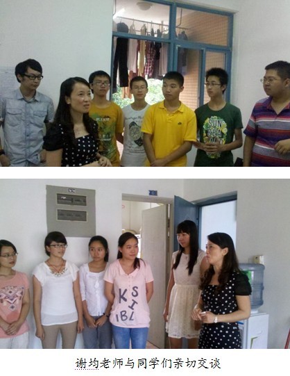党委副书记谢均老师和2013级辅导员杨琴老师,温馨走访了2013级本科新生寝室。