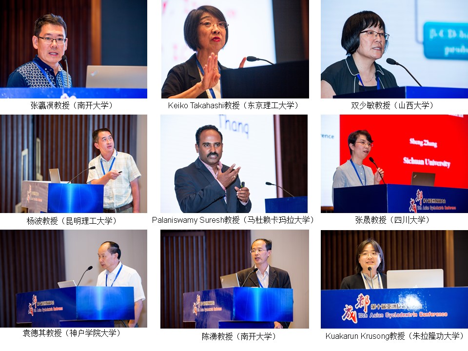 本次会议邀请了大阪大学Arika Harada教授、第一制药大学Hidetoshi Arima教授、华东理工大学马骧教授、东京大学Kohzo Ito教授、新加坡国立大学李俊教授就环糊精化学的研究新进展、应用意义、发展战略作了大会报告。神户学院大学的袁德其教授、朱拉隆功大学的Kuakarun Krusong教授、东京理工大学Keiko Takahashi教授、马杜赖卡玛拉大学Palaniswamy Suresh教授、a漫