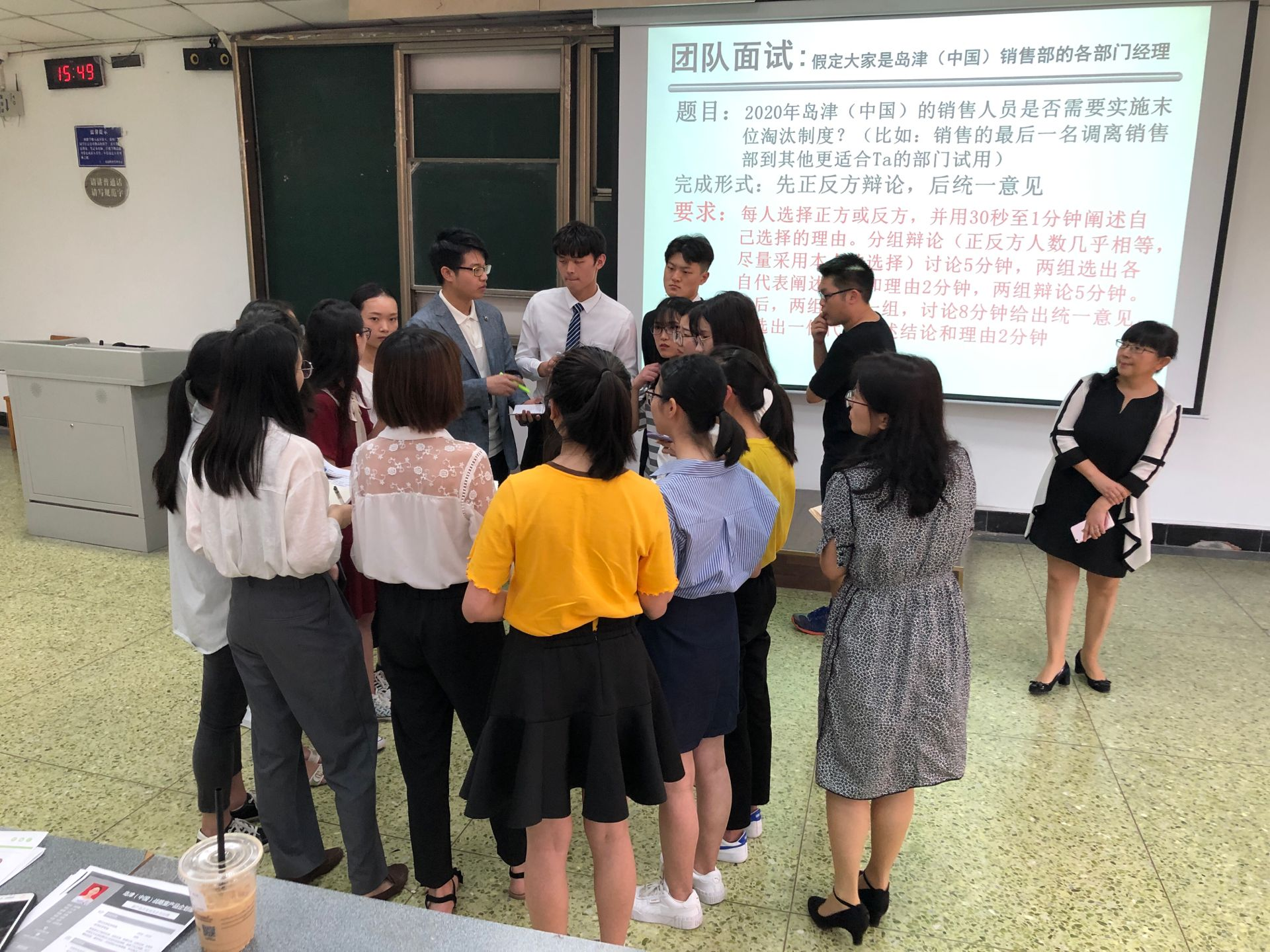 张燕老师用PPT向同学们展示了面试技巧,包括面试前,面试中和面试后的注意事项。马俪老师为大家讲解了简历的制作规范并点评了同学们递交的简历。讲解过后,开始面试,分为两个部分,团队面试和个人面试,最终产生6名同学,获得岛津企业管理(中国)有限公司暑期实习机会。