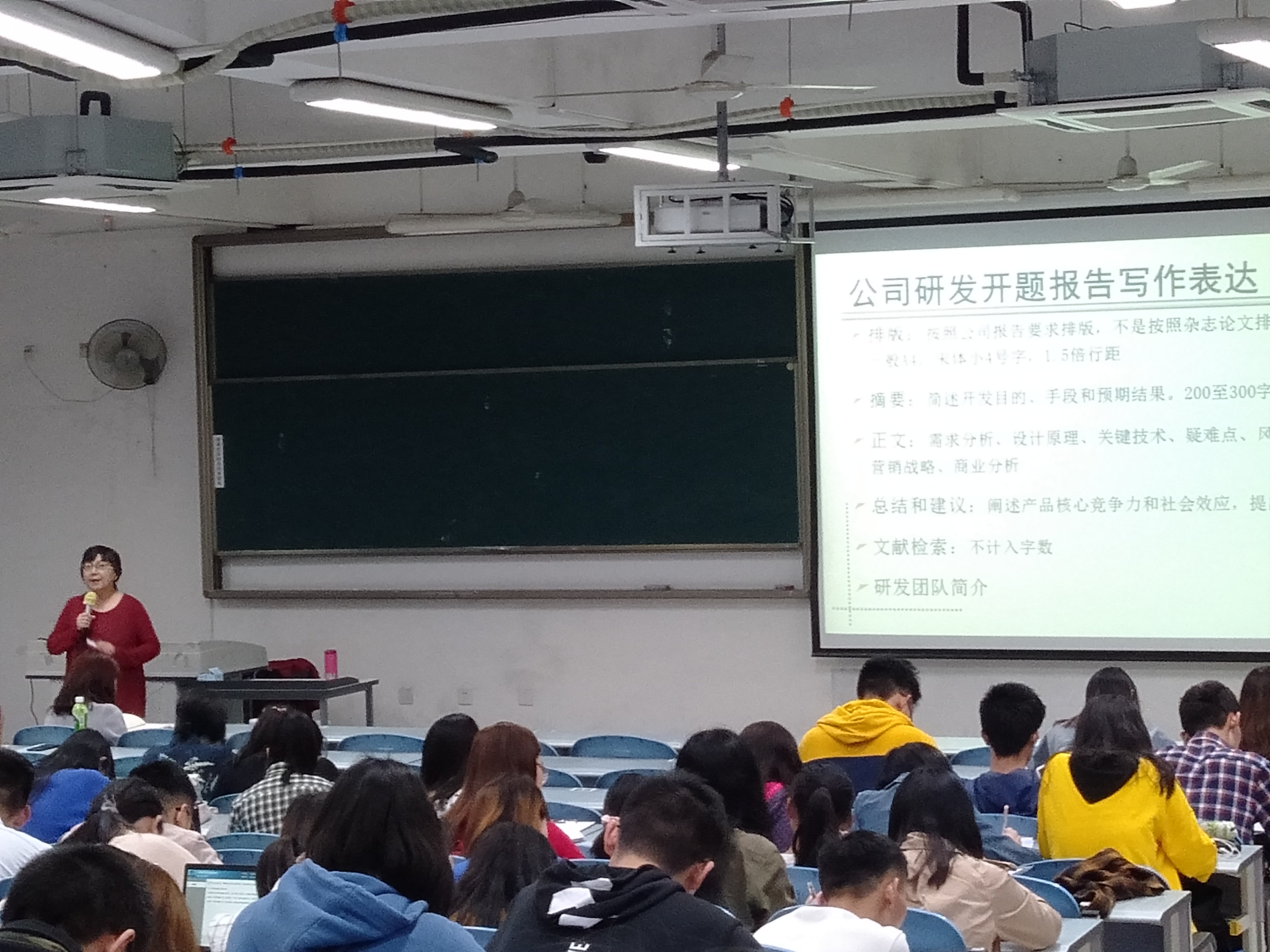 兼职教授马俪老师在综合楼C107为同学们带来了关于商业计划书写作的精彩讲座。a漫