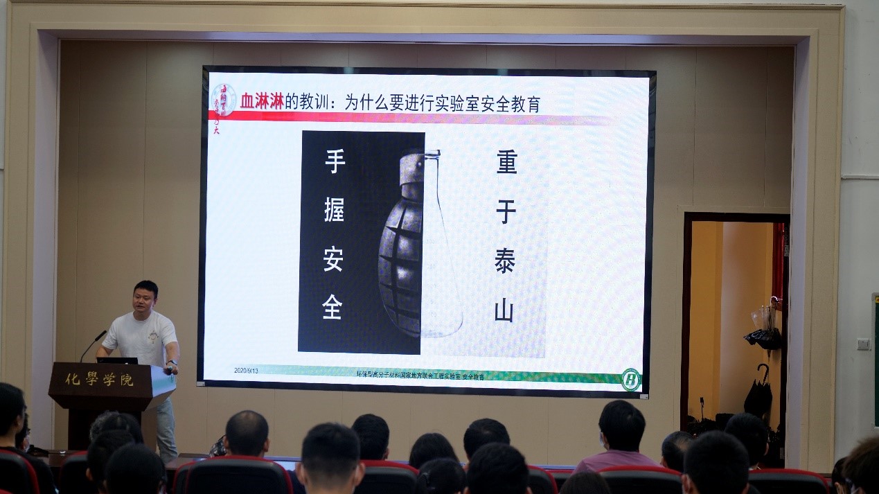 最后,实验室安全轮值主任陈力教授进行了实验室安全教育专题讲座,提醒同学们在实验室做好安全防护措施,杜绝安全隐患以及任何不规范、危险的实验操作,安全健康地完成学业。