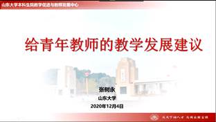 张树永教授分别从教学科研相互促进、青年教师发展定位、教学层次与教学学术等方面进行了详细的论述。张教授认为研究型大学老师在授课过程中要具有先进理念,要创新,加大挑战度,明确课程目标,认真落实,通过大纲设计需要完成的能力和素质培养,让学生更多的参与。同时,报告倡导青年教师要准确把握高校教师的内涵,鼓励青年教师以达成高阶教学水准为目标。