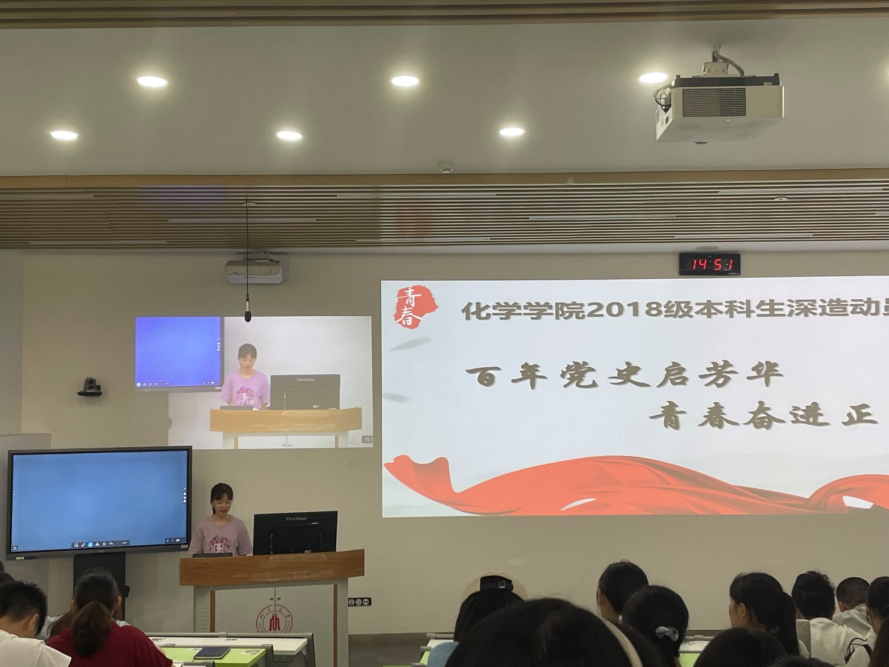 化学学院于2021年7月2日下午在望江基础教学楼C201教室举行了“百年党史启芳华,青春奋进正当时”——2018级本科生深造动员大会。学院党委书记谢均老师、学院副院长郑成斌教授、2017级优秀本科生代表及2018级全体本科生参加了本次活动,2018级本科辅导员张若一老师主持大会。