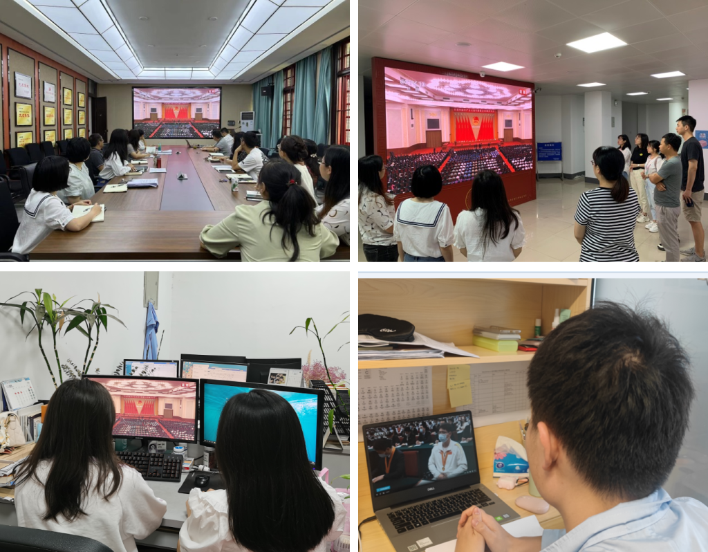 党委组织全院党员干部、青年教职工、学生,在会议室、教室、实验室、寝室、活动室和学院电子屏前等,认真收听收看庆祝中国共产主义青年团成立100周年大会直播。