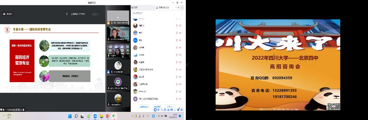 6月26日,应北京一六一中学、北京四中的邀请,学院开展了针对两所中学的线上高招咨询会,为考生和家长介绍a漫
