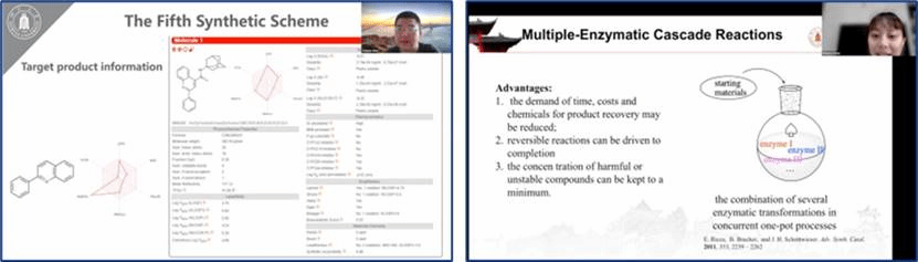 同学共同参与。在主持人的引导下,每位同学首先依次介绍自己和化学研究兴趣,在初步相互了解的基础上发散思维,讨论当代及新兴相关化学研究课题,分享各校学习和进实验室工作的体验,展望未来化学研究的方向和个人规划。交流全程使用英语,既提升了同学们的学术英语交流水平,也锻炼了大家的跨文化交流能力,为科研思维实训预热。科研实训由牛津大学有机化学系主任Edward Anderson教授实验室承担,本科生分组参与到该实验室在研前沿课题中,如抗寄生虫天然产物全合成等研究内容。各小组科研导师带领同学们通过对课题的学术调研、文献阅读、数据分析及可行性研究方案设及科研论文写作等必备科研过程,训练同学们规范撰写规范科研提案报告,让同学全面了解科研过程。最后,以分组汇报的形式向评委教授介绍其研究报告,并回答提问。最终的评估报告分为个人表现评估与小组表现评估两部分,鼓励同学们积极参与,提升科研认知及英语表达水平。