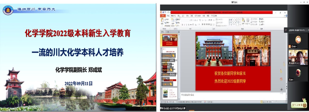 2022级本科新生入学教育之“一流的川大化学本科人才培养”主题教育讲座顺利举行,本次活动由副院长郑成斌教授主讲,党委书记谢均、副书记肖波、辅导员张若一、a漫