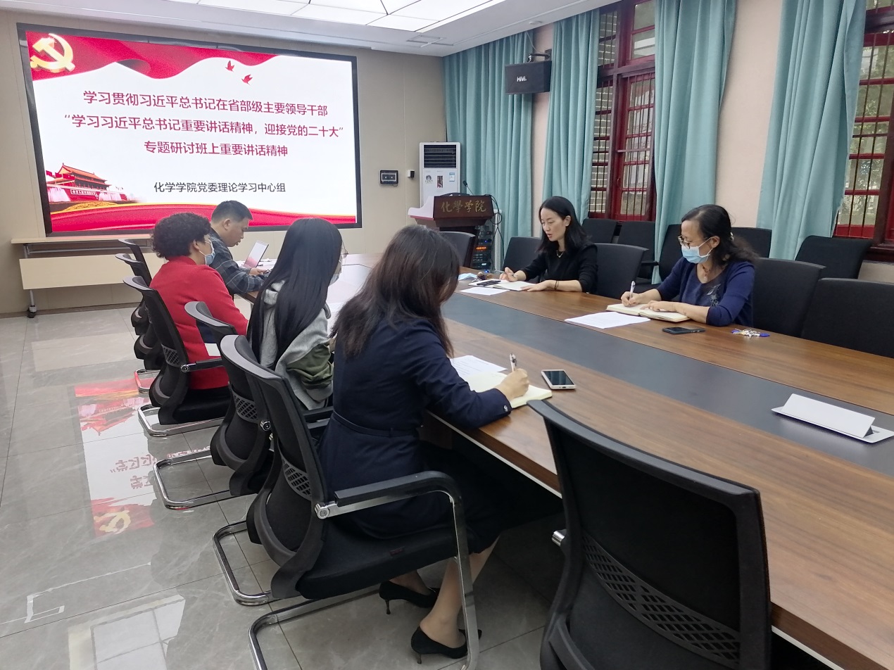 党委理论学习中心组在化学馆122会议室召开专题学习会,学习贯彻习近平总书记在省部级主要领导干部“学习习近平总书记重要讲话精神,迎接党的二十大”专题研讨班上重要讲话精神。