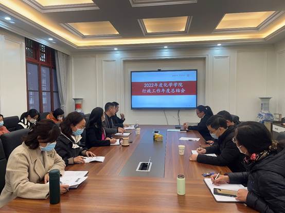 2023年1月13日下午,在化学馆103会议室,学院行政管理工作进行年终考核述职,学院党政领导、全体党政管理人员参加了会议。 会议由肖波副书记主持。