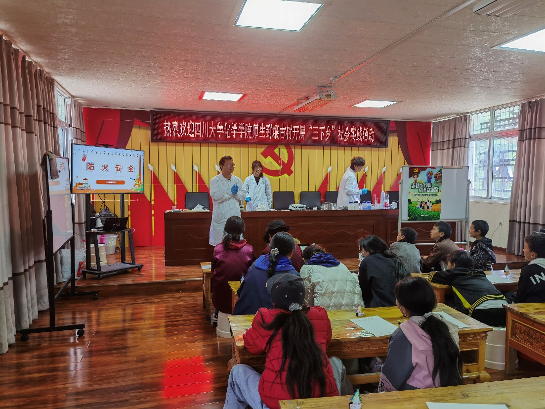 团队成员在壤古村、吾伊乡开展多场交流分享和化学科普活动。团队成员通过叙求学之路、论学习方法、展大学生活,激发当地青少年的求学热情,助力当地学生从思想上走出大山。随后,团队成员充分发挥专业特长、展现专业特色,为当地学生展示了多个化学趣味实验,激发当地学生对科学的探索热情,助力当地科学知识普及和普通话推广。