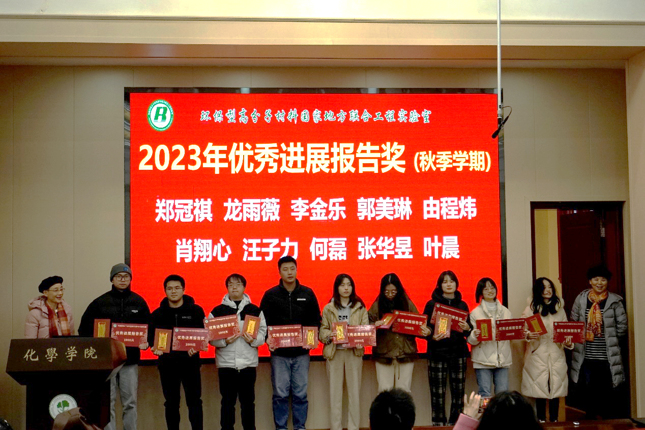 环保型高分子材料国家地方联合工程实验室在化学馆321报告厅举行了2023年度工作总结暨表彰大会。会议由实验室党支部书记汪秀丽教授主持,实验室全体师生参加了此次大会。