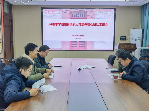 基础学科拔尖人才培养实施方案(修订)》,学院于3月6日召开了24年春季学期拔尖创新人才培养核心团队工作会,会议由化学学科拔尖创新人才培养执行主管郑成斌教授主持,培养方案执行主管张帆教授,课程建设执行主管张程教授,学术发展执行主管李峰教授,指导体系执行主管吴刚教授出席了本次会议。