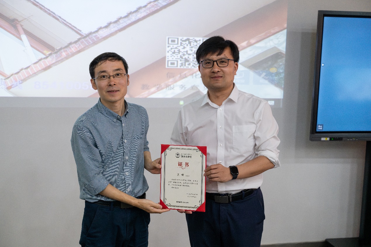 最后王峰研究员耐心地为现场师生答疑解惑。王峰老师深入浅出的报告,为利用生物质材料进行催化转化提供了示范,为切实推进中国氢能发展和环境保护提供了借鉴。最后,马利建副院长为王峰研究员颁发了“银杏大讲堂”证书。
