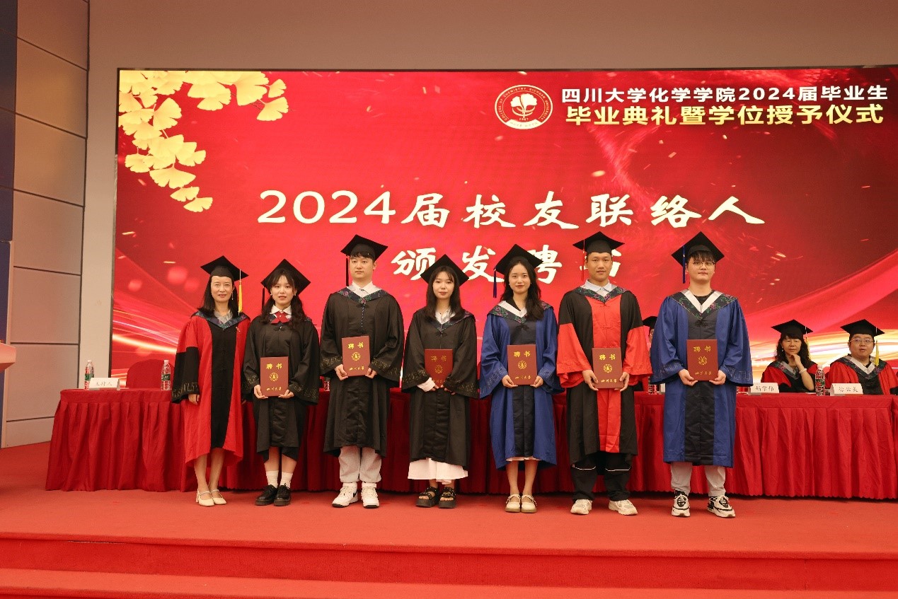 谢均书记为2024届六位毕业生联络人颁发聘任证书,希望他们作为连接校友与母校的坚实桥梁,在毕业之后,为校友和学校做好服务,做学院和母校最亮丽的名片。