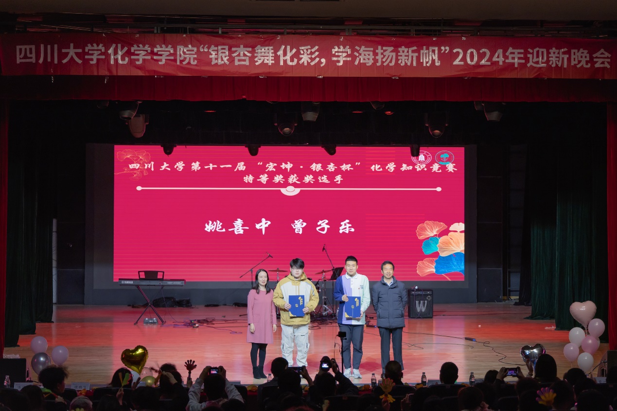 “银杏舞化彩,学海扬新帆”2024年迎新晚会暨化学学科系列竞赛颁奖典礼于2024年12月1日晚19:00在江安校区艺术学院小剧场顺利举行。a漫