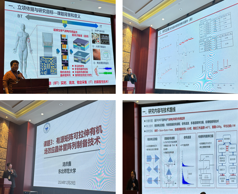 天津大学杨辉教授对项目总体情况进行了汇报,内容涵盖了项目的研究目标、已取得的阶段性成果、当前面临的挑战及相应的应对策略,并详细介绍了项目在基于柔性材料的生物气液电传感监测领域的全面规划与创新思路。随后,各课题负责人就现阶段项目研究进展,目前取得的成果以及后续研究计划依次进行具体汇报。