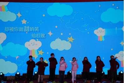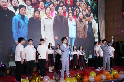 随着一曲悠扬动人的《干杯》歌声响起,由青年教师芶思绮带领的师生歌唱团以深情饱满的嗓音,瞬间点燃了现场的温暖氛围。随后,六位主持人满怀热情地走上舞台,逐一介绍莅临晚会的嘉宾。