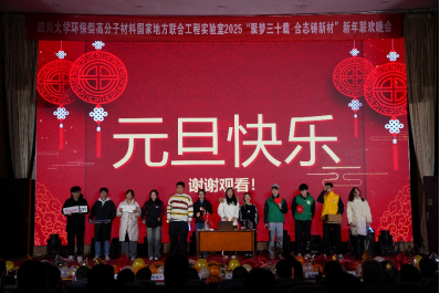 环保型高分子材料国家地方联合工程实验室(环保高分子实验室)举办了主题为“聚梦三十载,合志铸新材”的新年联欢晚会,并庆祝实验室成立三十周年。实验室全体师生及合作企业代表欢聚一堂,共同见证这一令人难忘的青春盛宴。