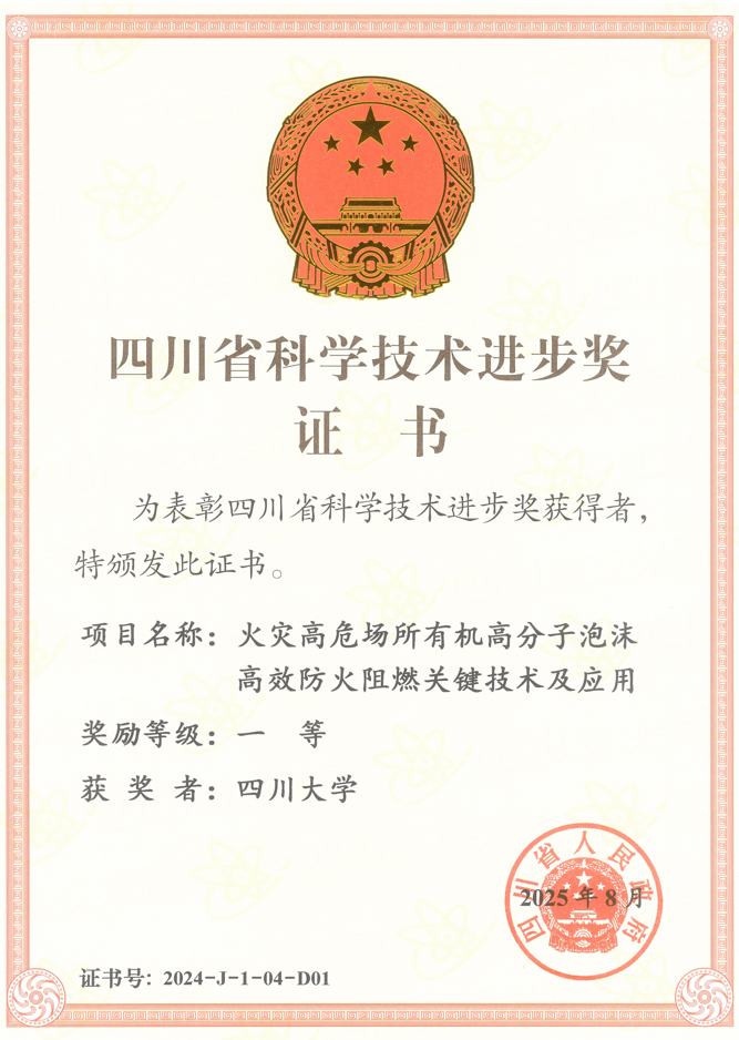 项目名称:火灾高危场所有机高分子泡沫高效防火阻燃关键技术及应用