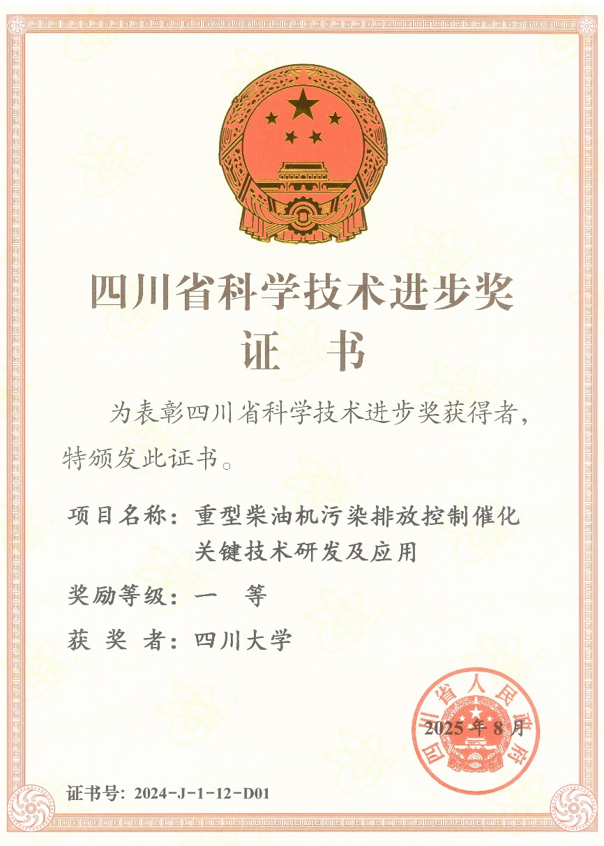 项目获授权中国发明专利27项、美国专利2项;主持/参与制定行业标准15项,发表SCI论文55篇。建成600万升/年催化剂生产线,近三年销售61亿。主要供应玉柴、一汽和云内等头部企业。基于本项目孵化的“中自科技”已于2021年上交所科创板上市,获批国家企业技术中心。培养国家级人才4人。