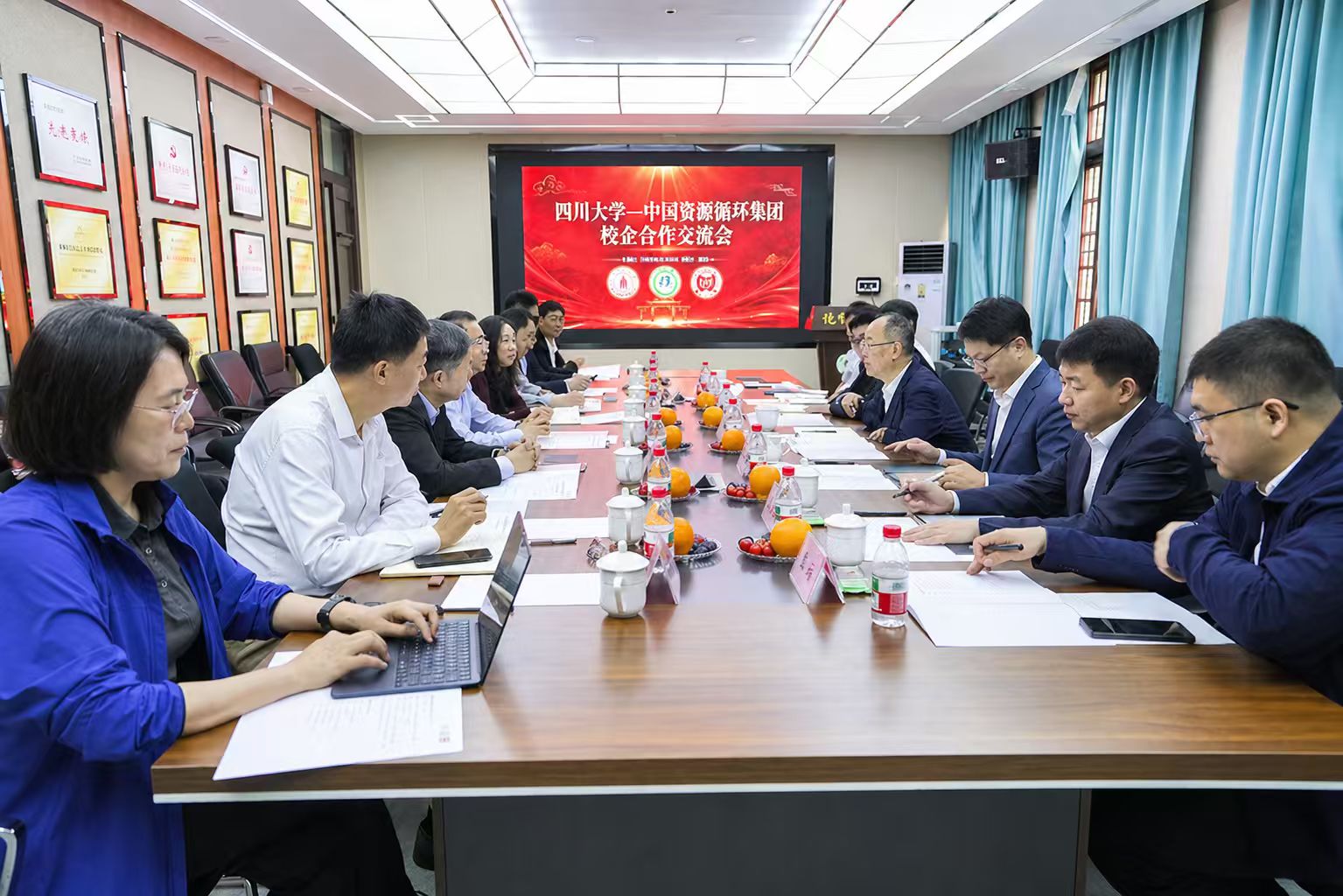 褚良银代表学校对中资环一行的到来表示欢迎,并介绍了学校近年来的发展情况,特别是高分子材料在服务国家重大战略需求方面取得的成果。他表示,学校将大力支持环保高分子实验室与中资环现有合作基础上,进一步深化在技术成果转化、人才培养等方面的合作,共同为推动废弃高分子材料资源化利用、服务国家资源战略贡献更大力量。